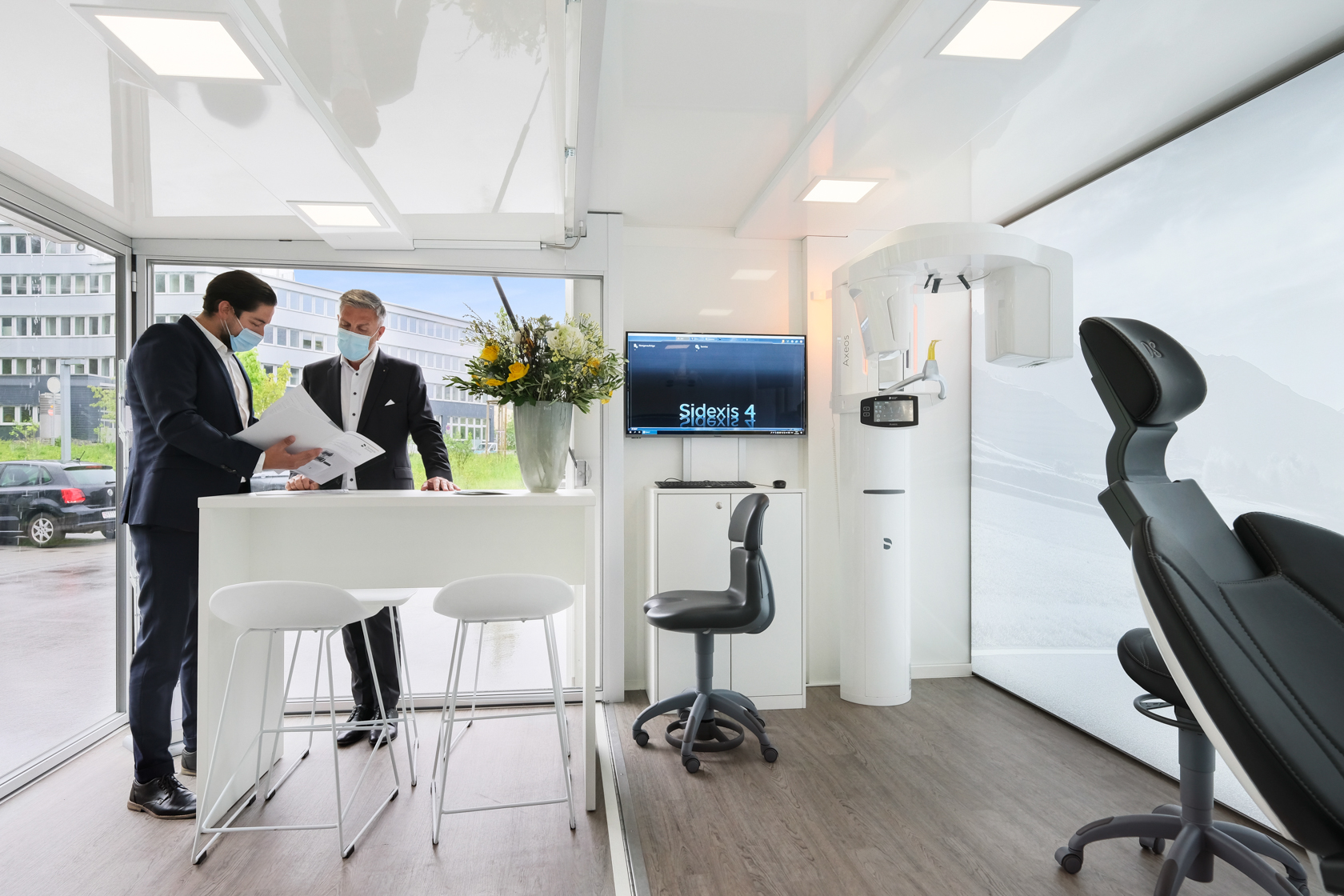 Alles gleich, und doch anders: Um Ihnen in Zeiten von Corona das unnötige Reisen zu ersparen und Ihnen die grösstmögliche Sicherheit bei der Beratung zu gewährleisten, haben wir unseren mobilen Showroom gebaut! Unser mobiler Showroom kommt in Ihre Nähe und steht exklusiv für Sie und Ihr Praxisteam zur Verfügung, denn der mobile Showroom gehört für den gebuchten Slot nur Ihnen allein! Lassen Sie sich in entspannter Atmosphäre beraten.